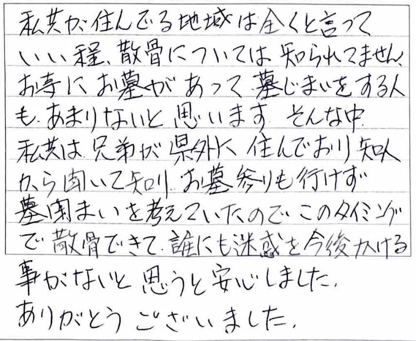 「ソバニアル自然葬」は故人様が望んだこと、そしてご遺族が望むことに耳を傾け、後悔のない供養を追求しております。