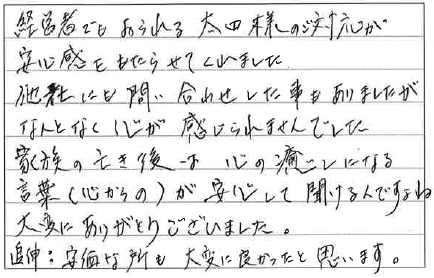 家族の亡き後は 心の癒しになる言葉(心からの)が安心して聞けるんですよね。