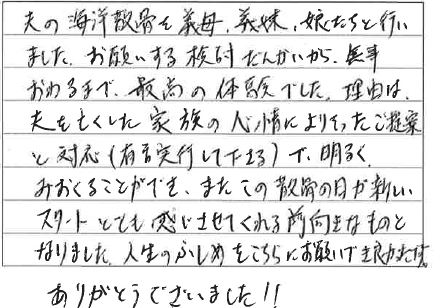 海洋散骨していただいて、ありがとうございました。